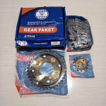 Rp 4.250.000Gear paket / Gigi tarik komplit untuk sepeda motor : Honda Revo Absolute Revo FI Revo Fit Blade Blade New 110 Blade 125 New 1 paket terdiri dari : Gir depan 14T Gir belakang 37T Rantai 428H-104L