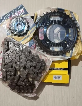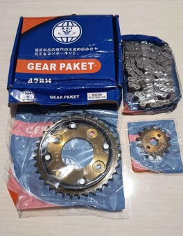 Rp 100.000Gear paket / gigi tarik komplit untuk sepeda motor : Yamaha Vega ZR Merek : Deisi 1 Paket terdiri dari : Gir depan 15T Gir belakang 40T Rantai 428H-108L