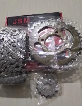 Rp 50.000Gear paket / gigi tarik komplit untuk sepeda motor : Honda Supra Merek : JSM 1 paket terdiri dari : Gir depan 15T Gir belakang 40T Rantai 428H-104L