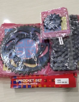 Rp 85.000Gear paket / gigi tarik komplit untuk sepeda motor : Yamaha Vixion Merek : SRK 1 paket terdiri dari : Gir depan 14T Gir belakang 42T Rantai 428H-120L