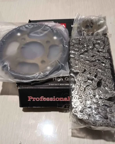 Rp 90.000Gear paket / Gigi tarik komplit untuk sepeda motor : Honda Supra Fit New Honda Supra X 125 1 paket terdiri dari : Gir depan 14T Gir belakang 36T Rantai 428H – 106L