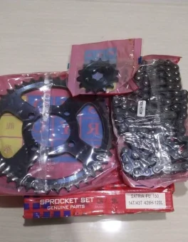 Rp 95.000Gear paket / Gigi tarik komplit untuk sepeda motor : Suzuki Satria FU 150 Satria FU 150 FI Satria FU Barong Satria FU Facelift 1 paket terdiri dari : Gir depan 14T Gir belakang 43T Rantai 428H-120L