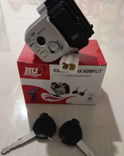 Kunci kontak set / komplit dengan kunci jok. Untuk sepeda motor Honda Supra Fit New. Merek : RUI